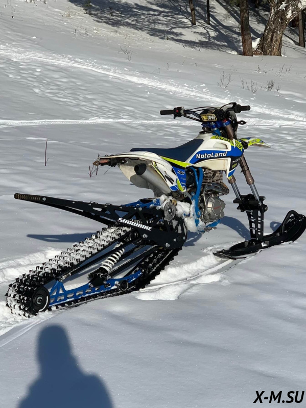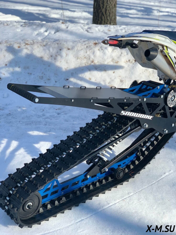 Folk 121 от Snowbike — универсальный гусеничный комплект для внедорожных мотоциклов. Гусеничный мотоцикл (СНОУБАЙК) это, по сути, одноколейный снегоход. Вы получаете возможность продлить мото сезон и эксплуатировать мотоцикл не только летом но и зимой.